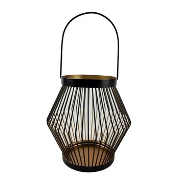 Großhandel Black Metal Iron Wire Kerzenhalter Ovale Kerzenhalter mit Glas