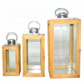 Juego de 3 faroles de madera para decoración de boda y jardín